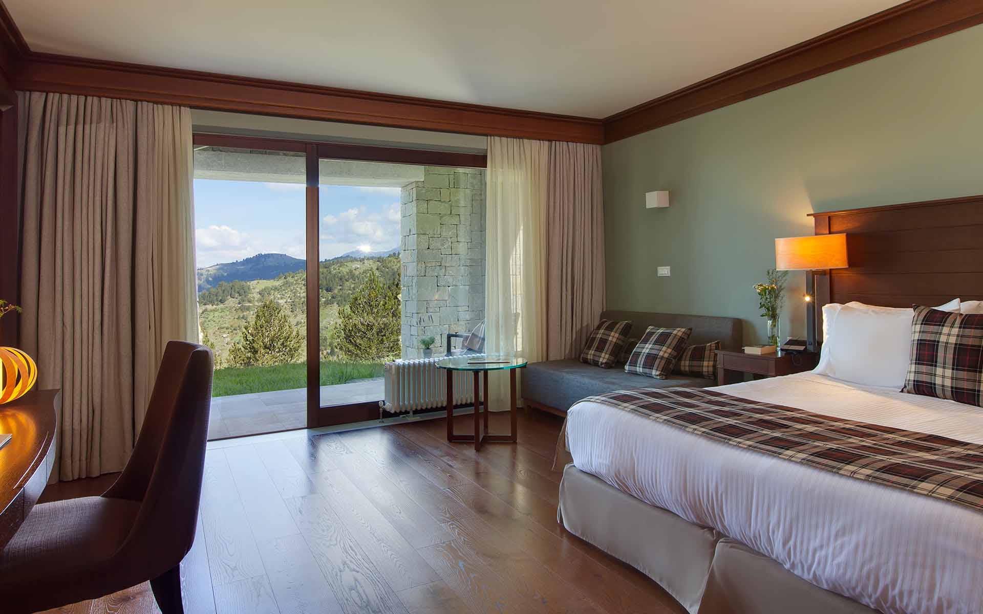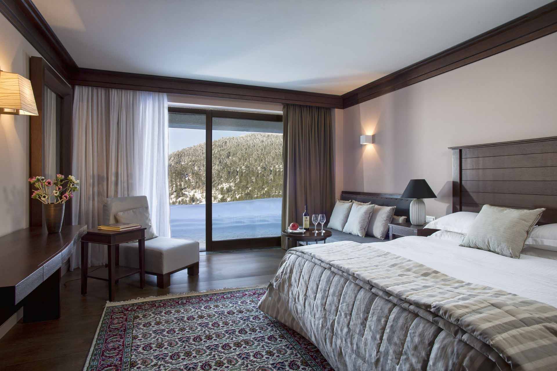 הסוויטות והחדרים כוללים רצפות עץ, ריהוט מעץ כהה, עיצוב בצבעים רכים ונוף להר פינדוס (Pindos Mountain). כל החדרים כוללים מיני בר, טלוויזיה בלוויין בעלת מסך שטוח, מזרנים אורתופדיים וחדר רחצה משיש עם חלוקי רחצה ומוצרי טיפוח ממותגים. חלק מיחידות האירוח כוללות אח.